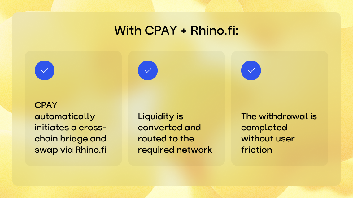 By integrating Rhino.fi liquidity and swap infrastructure, CPAY takes another step toward building a payments layer where cross-chain complexity disappears.