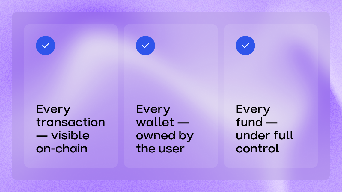 Funds are never held “somewhere in the system” — they always remain in user-controlled wallets.